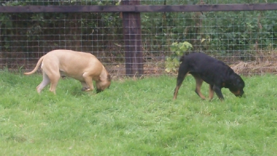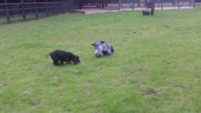 All dogs walked at least 3 times daily; in paddock, tennis court/play pen or for a stroll down the lane.