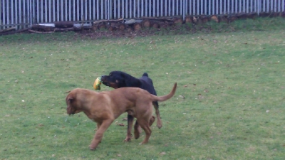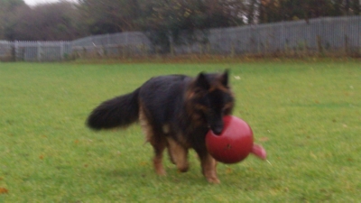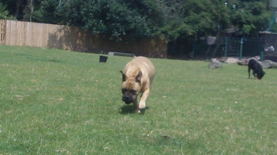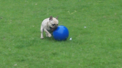 French Bull Buddy and his boomer ball.