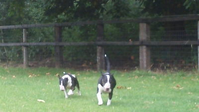English Bull Terriers Bailey + Poppy.