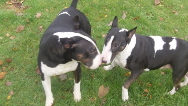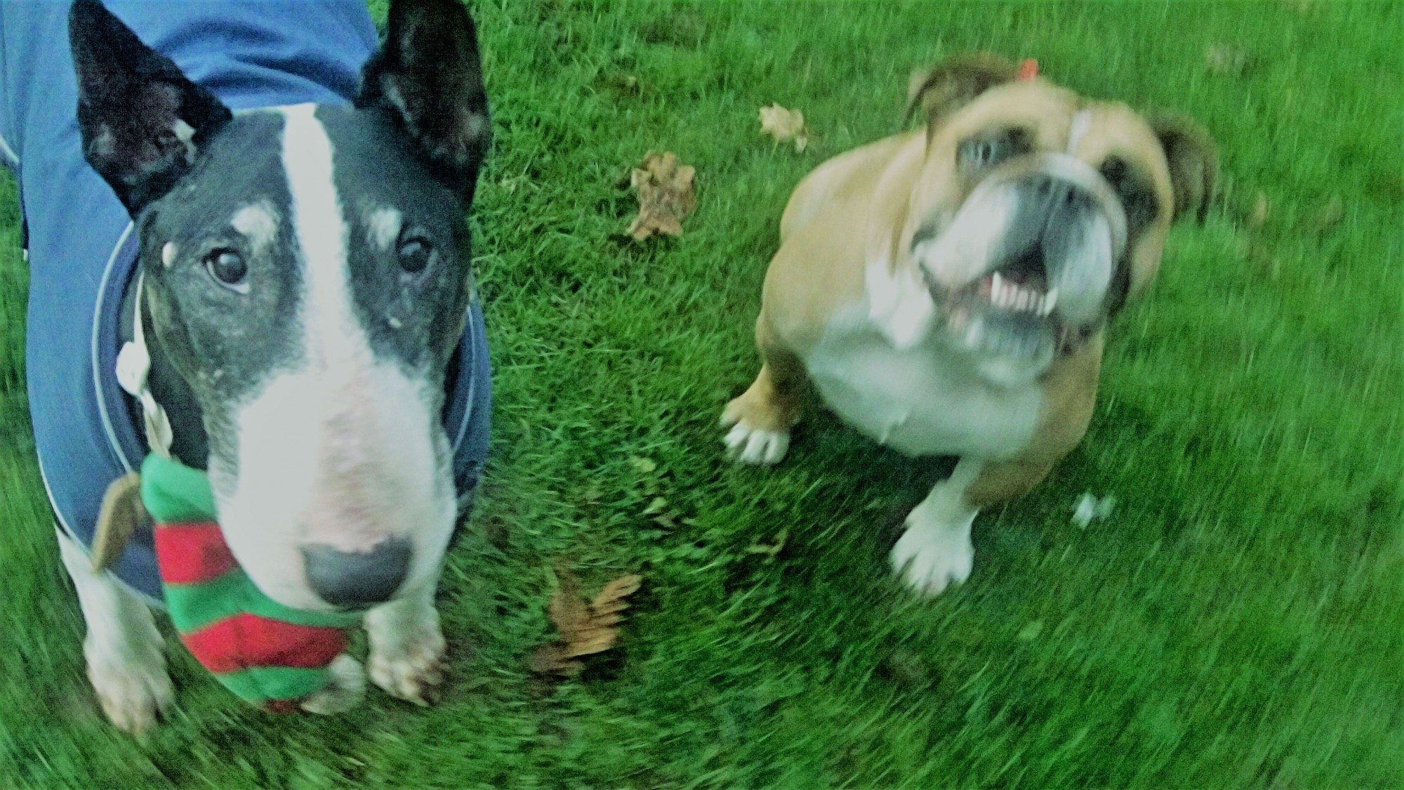 English Bull Terriers Badger Bailey + Princess Poppy.